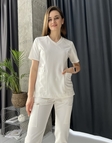 Колір, що давно став медичною класикою, це не прросто відтінок,це символіка насичена сенсом.Універсальна модель костюма сучасного дизайну в молочному білому кольорі. Якість, що приємно вас здивує. Ніжна, м'яка, еластична тканина огортає турботою.Штани на вибір довгі чи джогери
