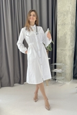 Елегантний халат з невагомими рукавами та вишуканими ґудзиками задасть тон на весь день. Резинка на талії робить фігуру ще більш жіночною та елегантною, а комір надає образу класичного звучання. Є кишеньки в бокових швах для вашої зручності. Ви будете почувати себе принцесою, неможливо втриматись щоб не покружляти декілька хвилин біля дзеркала.