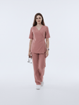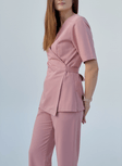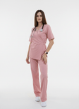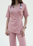 Медичний костюм Lira створений для тих, хто цінує баланс між красою та комфортом. Виконаний із високотехтологічної тканини із додаванням еластичних волокон.Прилягання регулюється поясом, із внутрішньої сторони топа є додаткові завязки для надійної посадки, штани трендові - довгі прямі, на поясі широка прошита резинка, що не перекручується та не тисне.Завдяки своєму крою костюм візуально витягує фігуру та робить її ще стрункішою.