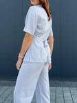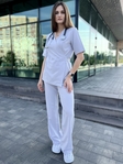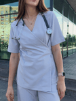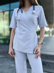 Медичний костюм Lira створений для тих, хто цінує баланс між красою та комфортом. Виконаний із високотехтологічної тканини із додаванням еластичних волокон.Світло-сірий колір з легким ліловим відтінком заворожує своїм незвичним виглядом, а тканина дарує комфорт та ніжність з першого дотикуПрилягання регулюється поясом, із внутрішньої сторони топа є додаткові завязки для надійної посадки, штани трендові - довгі прямі, на поясі широка прошита резинка, що не перекручується та не тисне.Завдяки своєму крою костюм візуально витягує фігуру та робить її ще стрункішою.