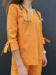 Медичний костюм, що зробить ваш настрій на весь деньЯскравий соковитий помаранчевий - один з ідеальних кольорів вашого позитивного настроюКостюм виконаний із високоякісної натуральної еластичної тканини (95% бавовна/ 5% еластан)Вільний крій топа, штани мом з високою посадкою не сковують рухи і ви почуваєтесь наче в улюбленій піжамці