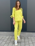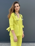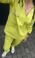 Медичний костюм, що зробить ваш настрій на весь деньЯскравий фісташковий - один з ідеальних кольорів вашого позитивного настроюКостюм виконаний із високоякісної натуральної еластичної тканини (95% бавовна/ 5% еластан)Вільний крій топа, штани мом з високою посадкою не сковують рухи і ви почуваєтесь наче в улюбленій піжамці