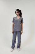 Ніжна та сучасна модель медичного костюма. Надзвичайно зручний крій що не сковує рухи, тканина, що з першим дотиком огортає ніжністю, злегка приталені елементи, що додають жіночності та невагомості в кожному русі. Продуманий крій та зручні кишені для різних дрібниць.Тканина 21% віскоза/ 74% поліестер/ 5% еластан
