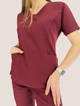 Топ неймовірного кольору, що чудово поєднується з різними штанами, щоразу створюючи стильний робочий образ.Вдалий крій не обмежує рухи, а високотехнологічна еластична тканина робить його ще більш ергономічним. Склад тканини 21% віскоза/74% поліестер/ 5% еластанРозмір 40, довжина топа 63 см